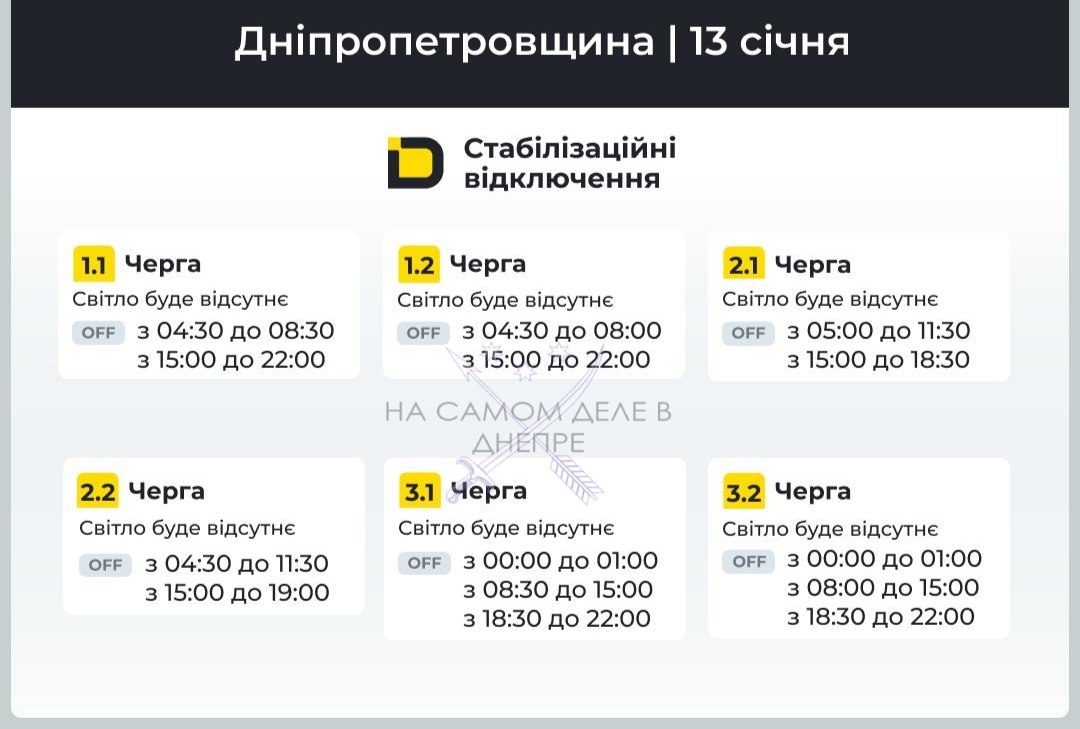 Днепропетровская область, график отключения электроэнергии.