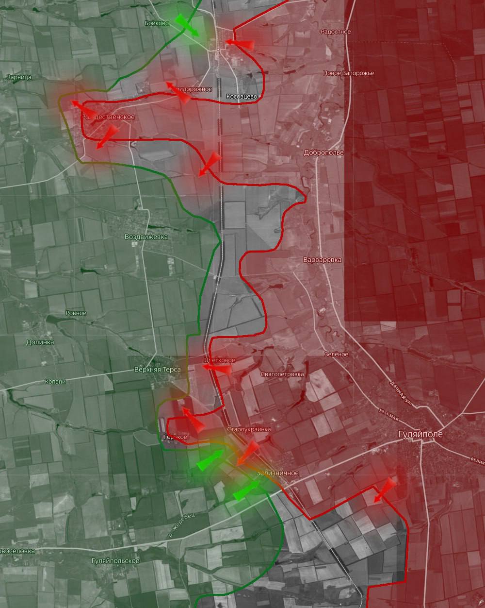«На Днепропетровском направлении ВС РФ продвигаются на запад – в частности, в районах н.п. Зарница, Воздвижевка, Верхняя Терса и Гуляйпольское.